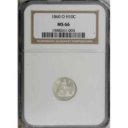 <B>1860-O H10C MS66 NGC.</B></I> A lightly toned and thoroughly lustrous Premium Gem with a precise strike and exceptional eye appeal. The only New Orleans issue of the Legend Obverse type. Census: 10 in 66, 0 finer (5/07).<BR><BR><b>Shipping:</b> Coins & Currency (<a target="_blank" href="http://www.heritageauctions.com/common/shipping.php">view shipping information</a>)