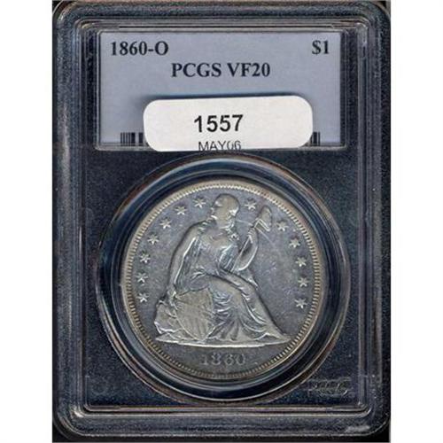 <b>1860-O Liberty Seated Dollar. PCGS graded VF20.</b> Choice surfaces for the grade with semi-prooflike fields on both sides <b>(PCGS # 6950)</b> <i>