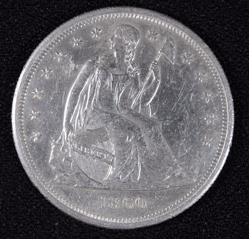 1860-O SEATED DOLLAR, NICE BU, PL RARE IN THIS GRADE