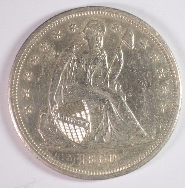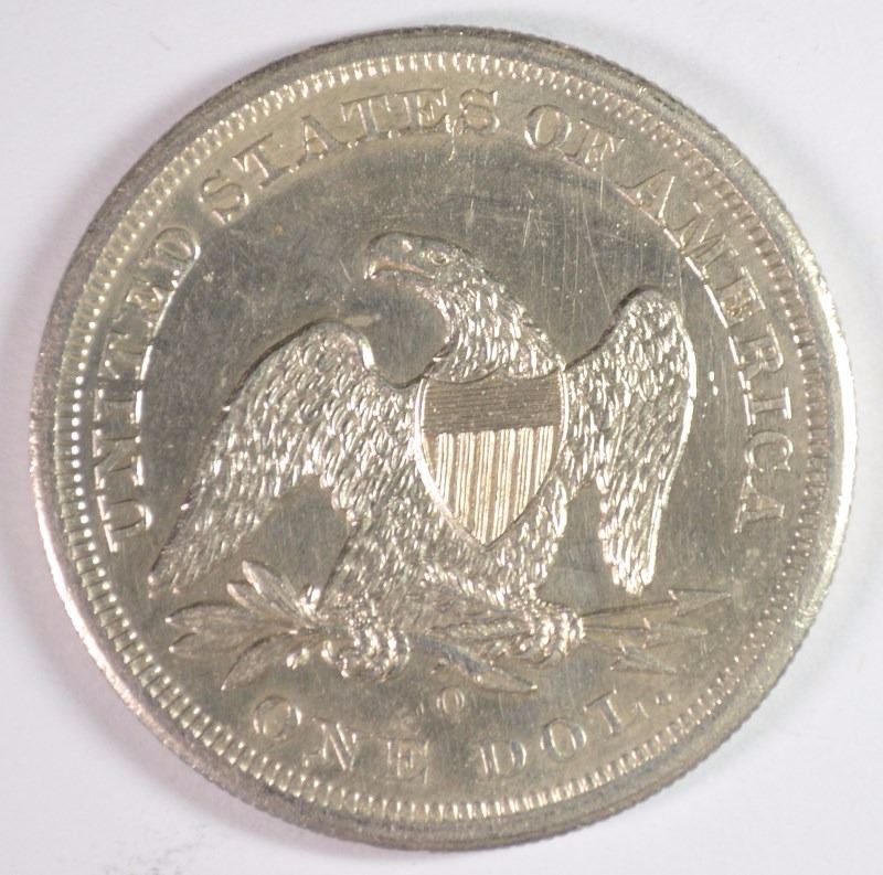 1860-O SEATED DOLLAR, NICE BU, PL RARE IN THIS GRADE