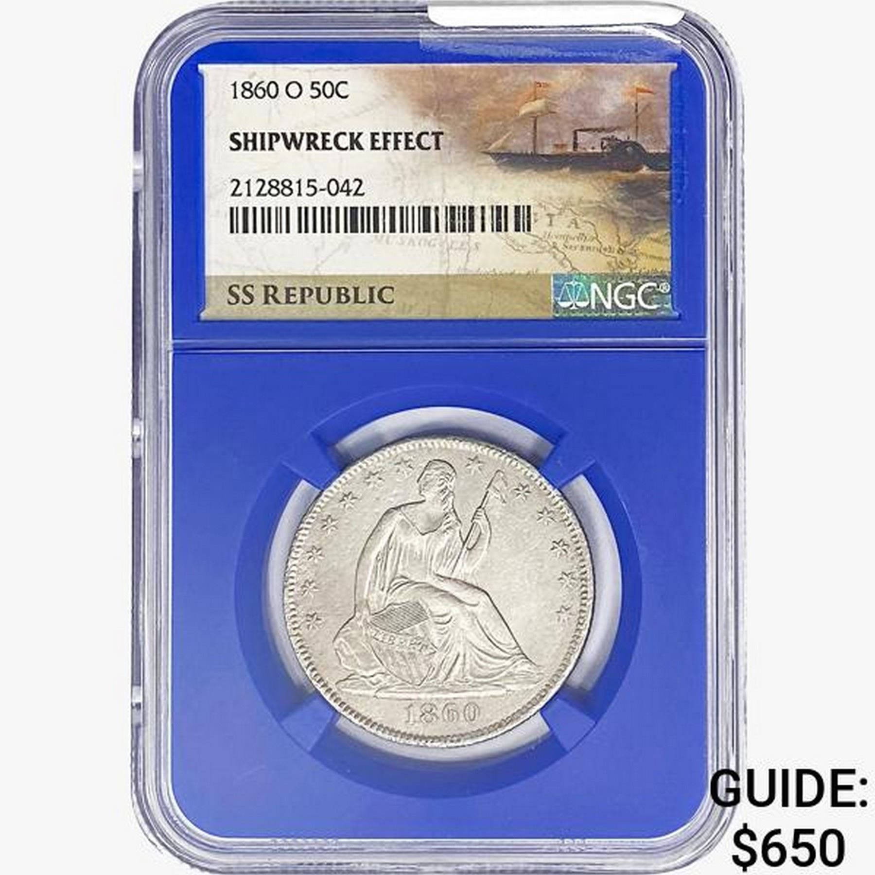 1860-O SL. 50C Ship. Effect W/ Book Set NGC