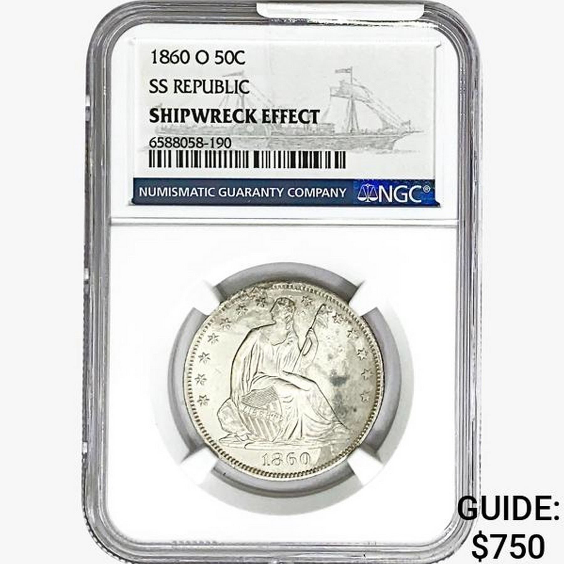 1860-O Seated Lib. 50C NGC Shipwreck Effect SS REP