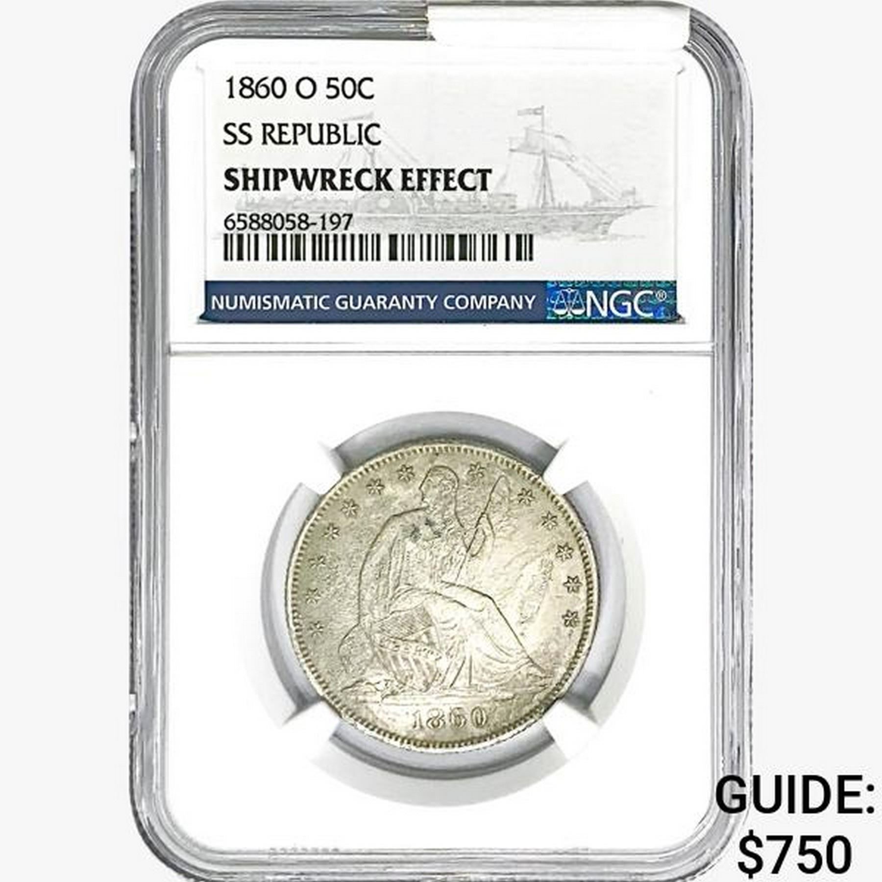 1860-O Seated Lib. 50C NGC Shipwreck Effect SS REP