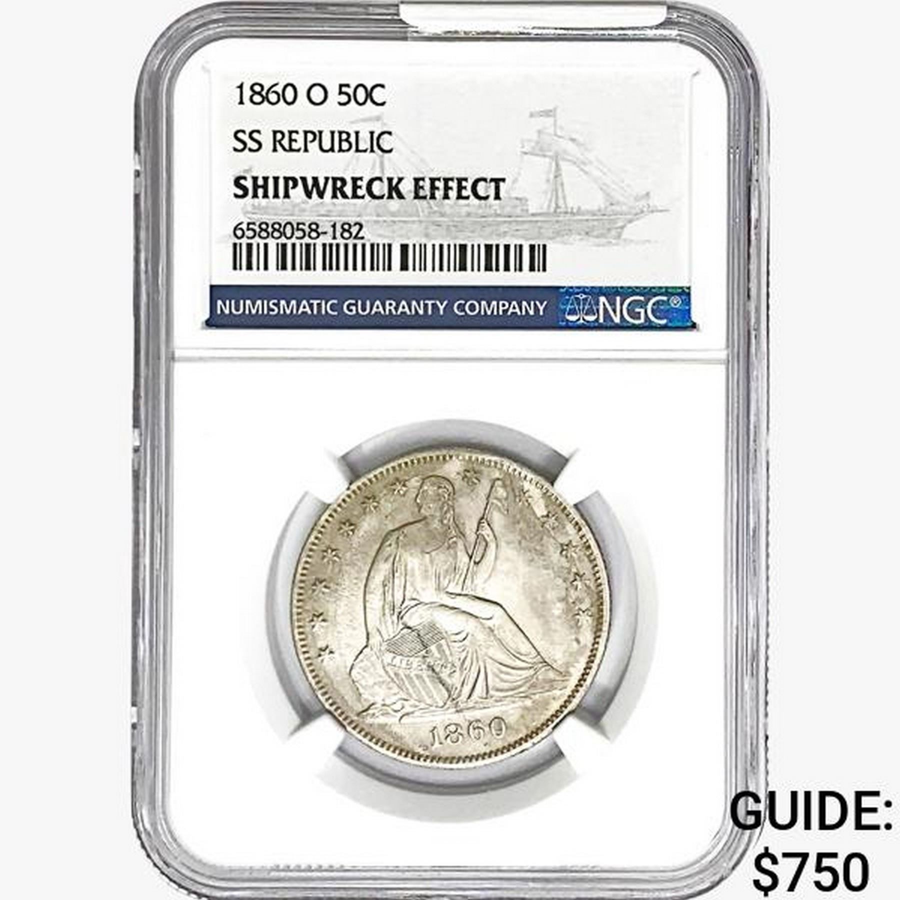 1860-O Seated Lib. 50C NGC Shipwreck Effect SS REP
