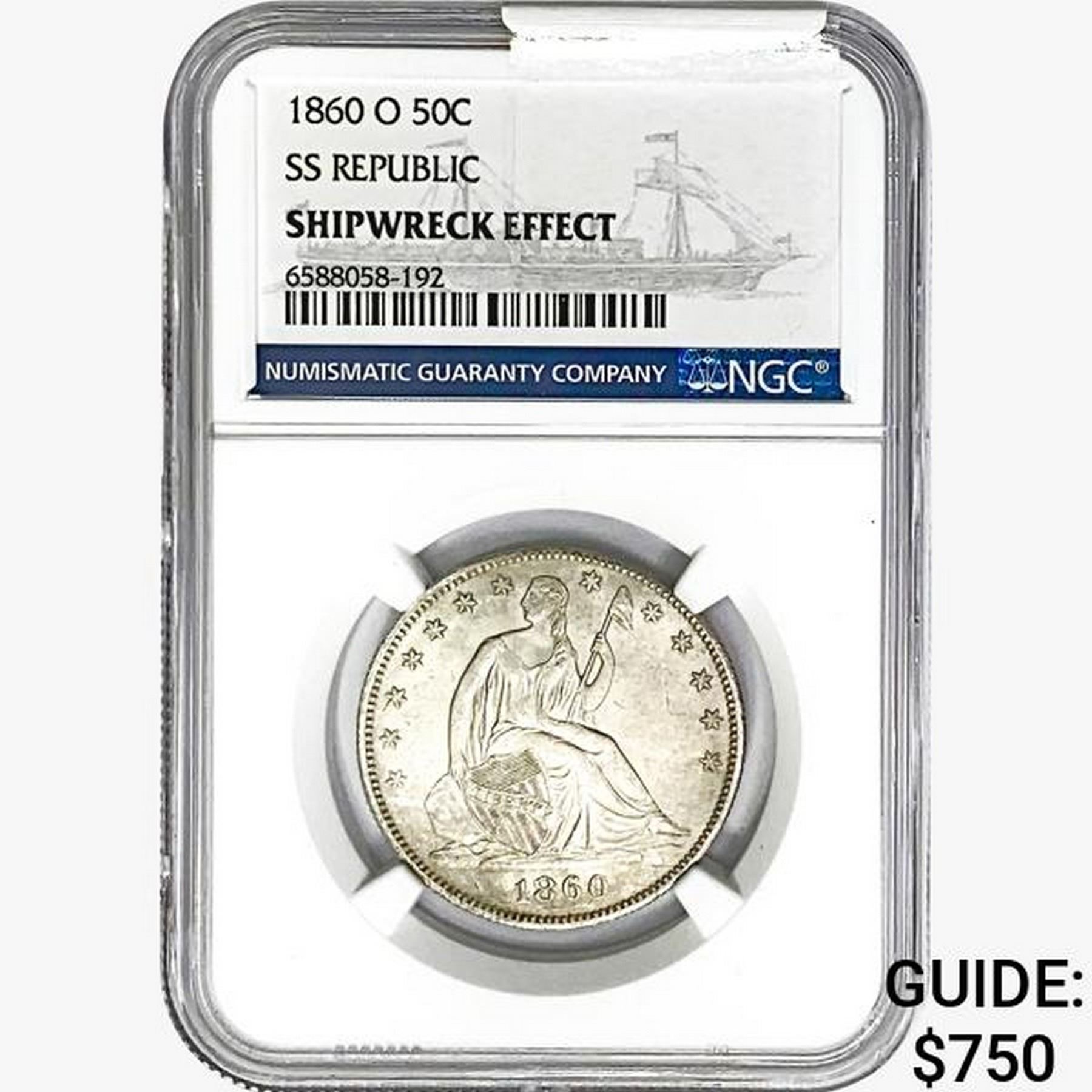 1860-O Seated Lib. 50C NGC Shipwreck Effect SS REP