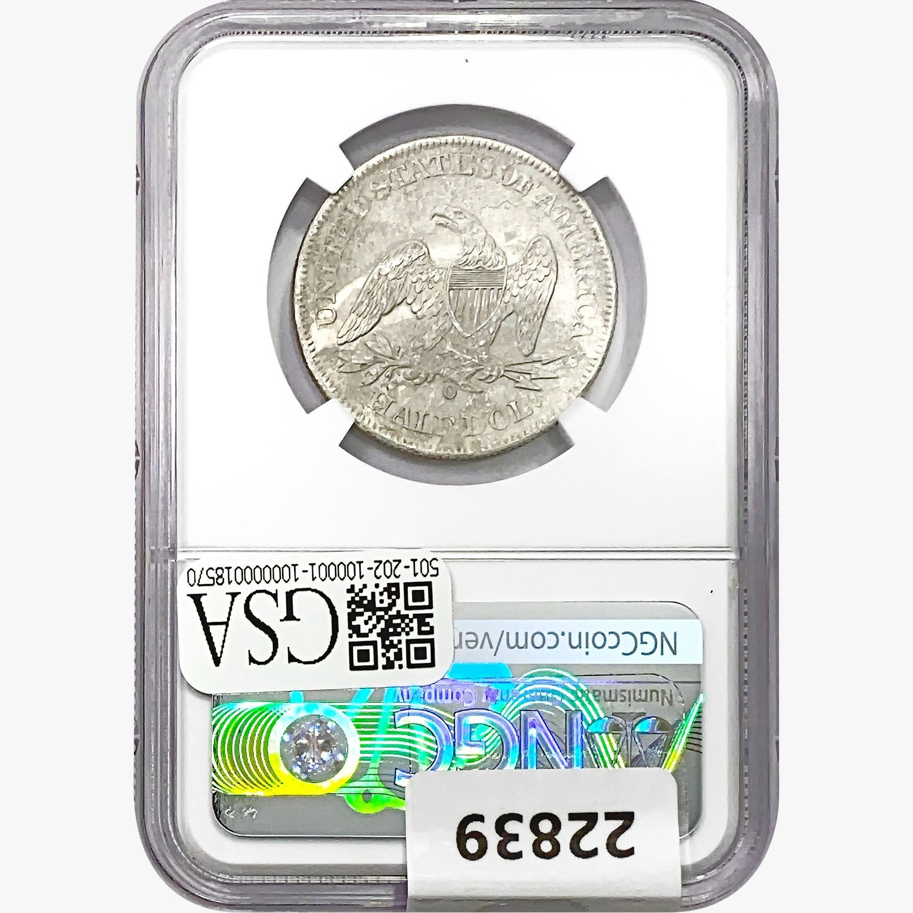 1860-O Seated Lib. 50C NGC Shipwreck Effect SS REP.