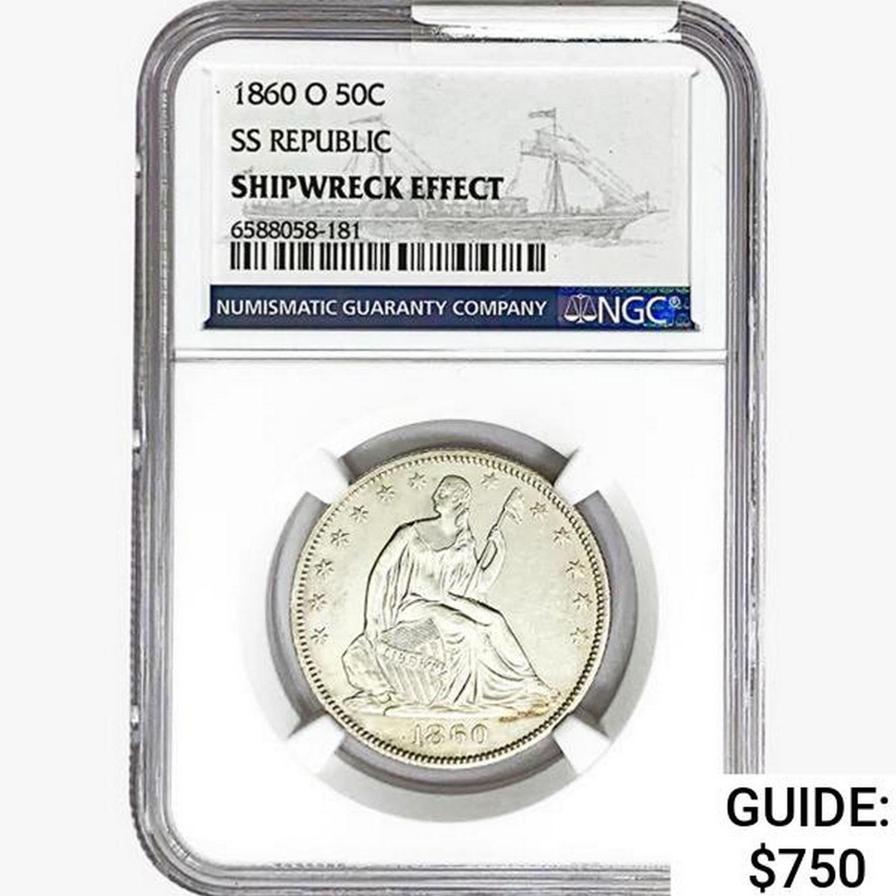 1860-O Seated Lib. 50C NGC Shipwreck Effect SS REP.