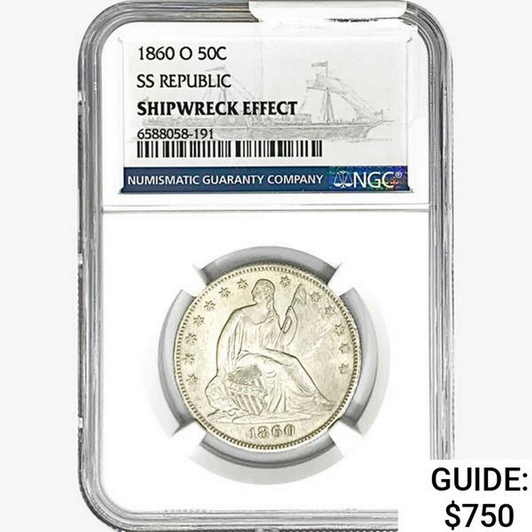 1860-O Seated Lib. 50C NGC Shipwreck Effect SS REP.