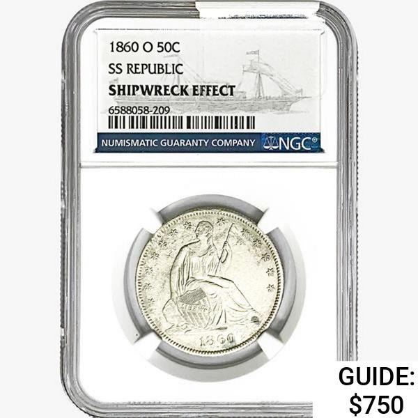 1860-O Seated Lib. 50C NGC Shipwreck Effect SS REP.