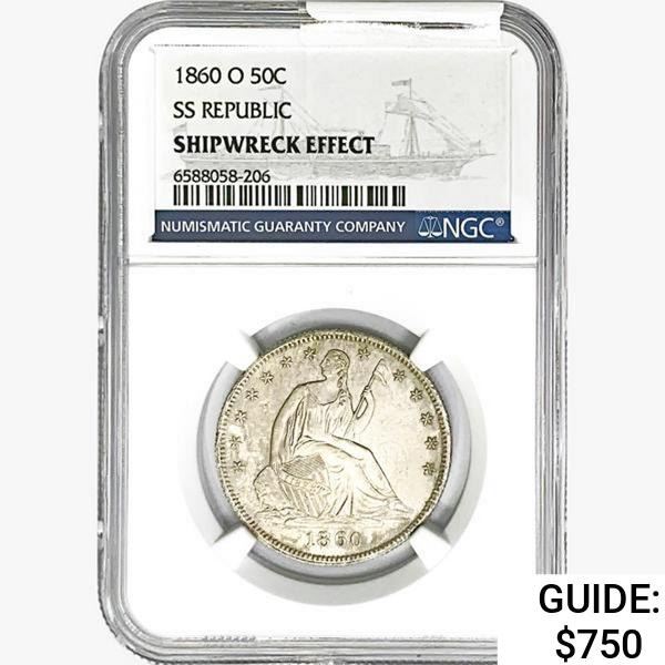 1860-O Seated Lib. 50C NGC Shipwreck Effect SS REP.