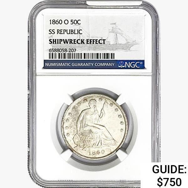 1860-O Seated Lib. 50C NGC Shipwreck Effect SS REP.