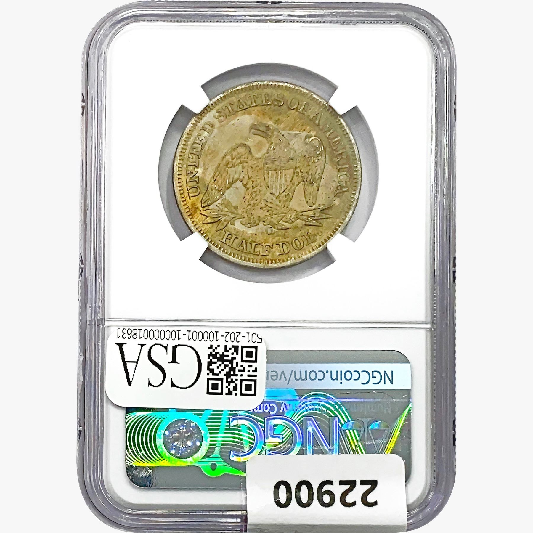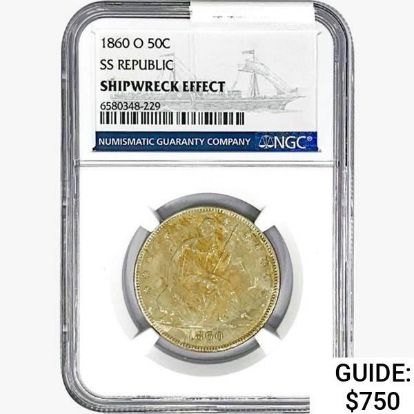 1860-O Seated Lib. 50C NGC Shipwreck Effect SS REP.