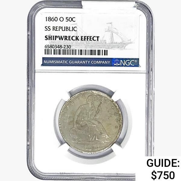 1860-O Seated Lib. 50C NGC Shipwreck Effect SS REP.