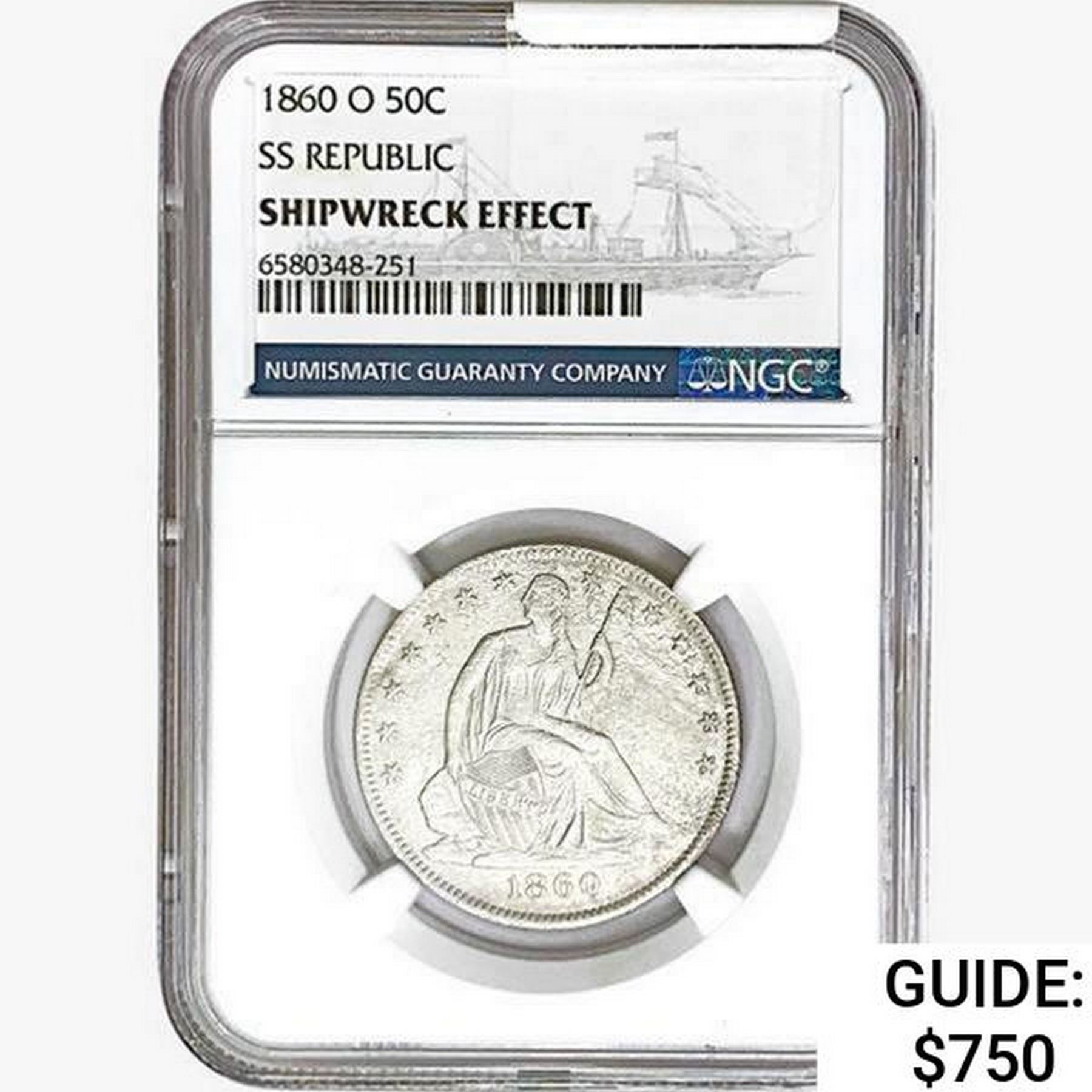 1860-O Seated Lib. 50C NGC Shipwreck Effect SS REP.
