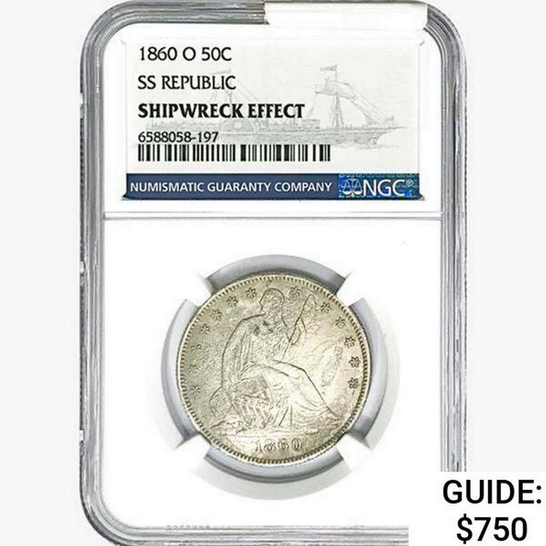 1860-O Seated Lib. 50C NGC Shipwreck Effect SS REP.