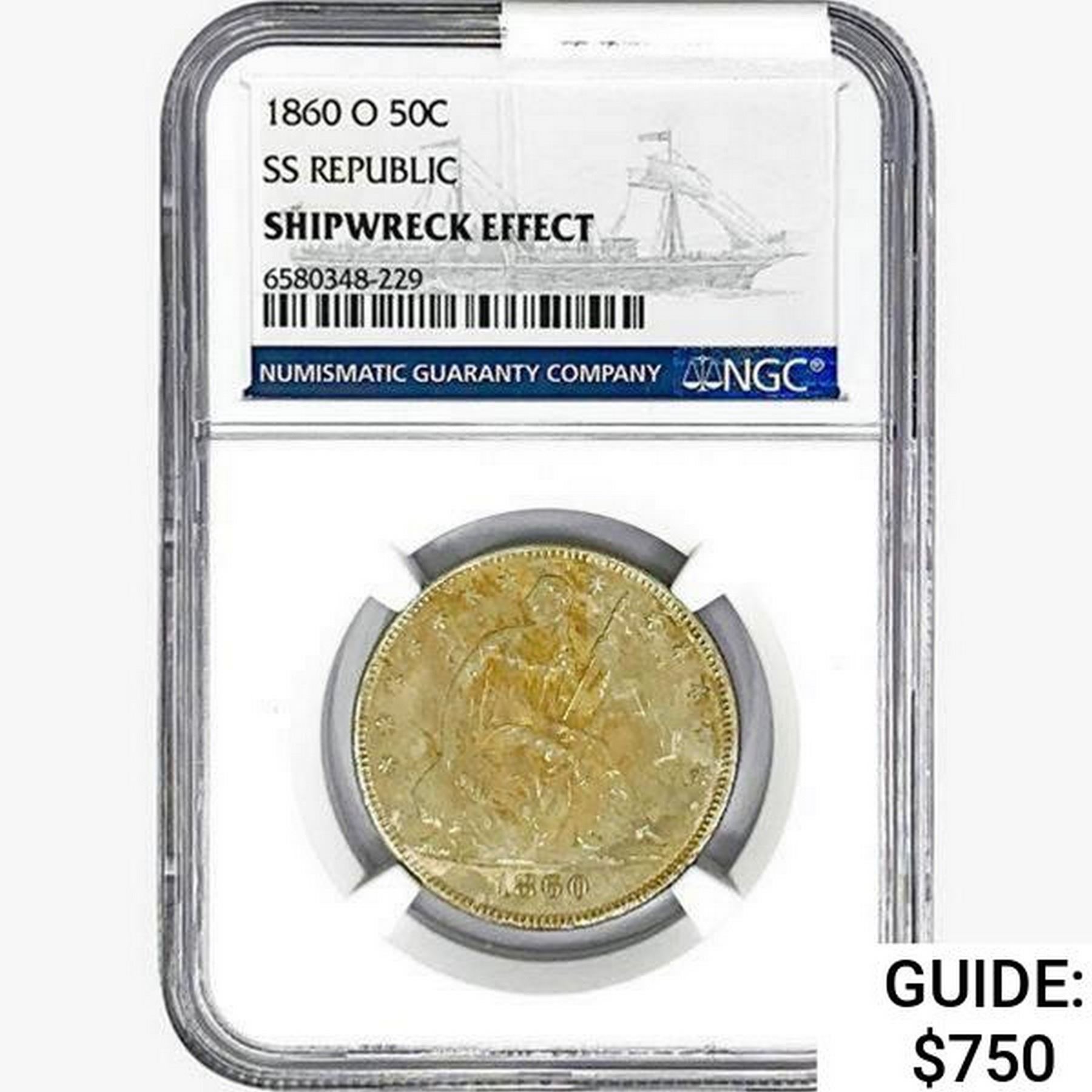 1860-O Seated Lib. 50C NGC Shipwreck Effect SS REP