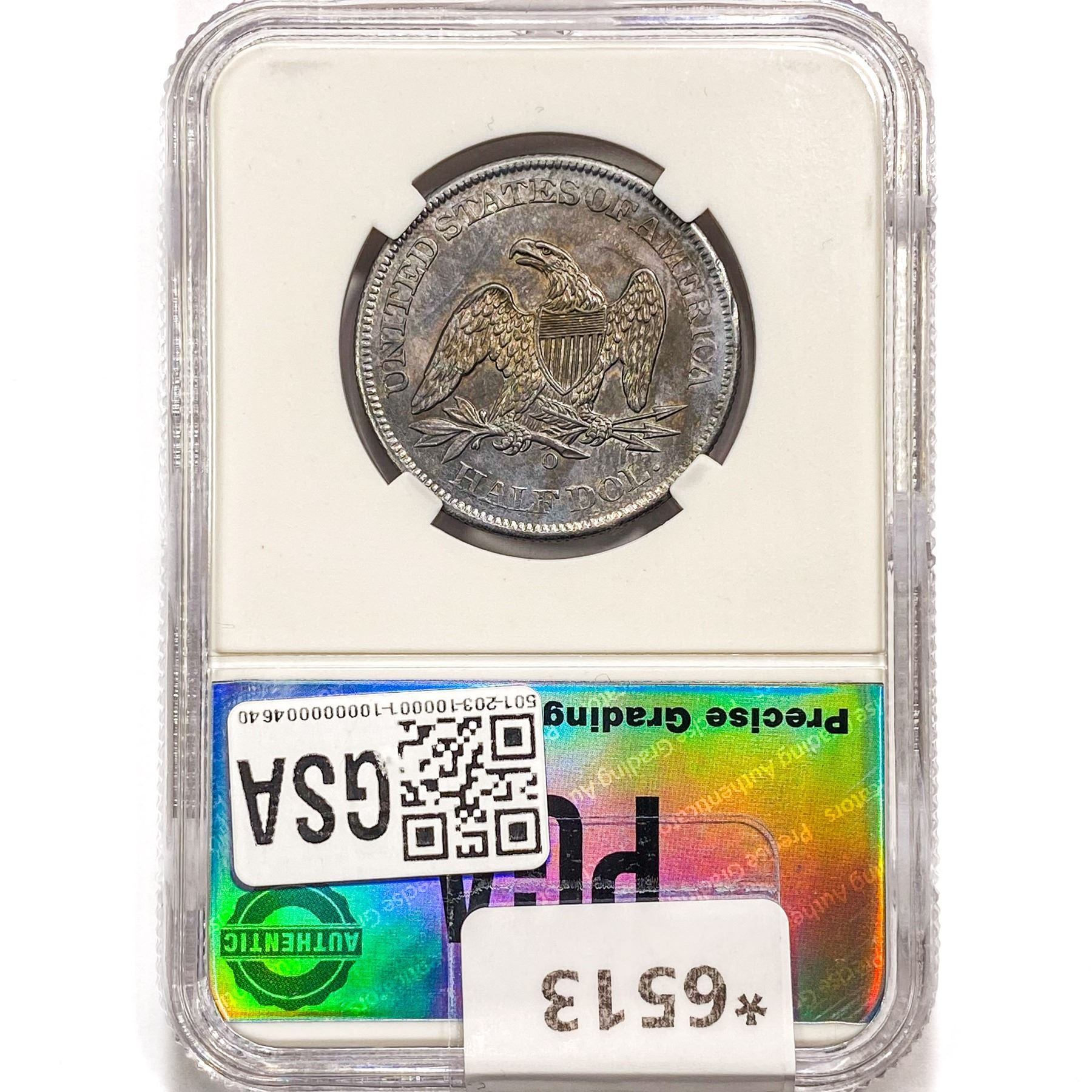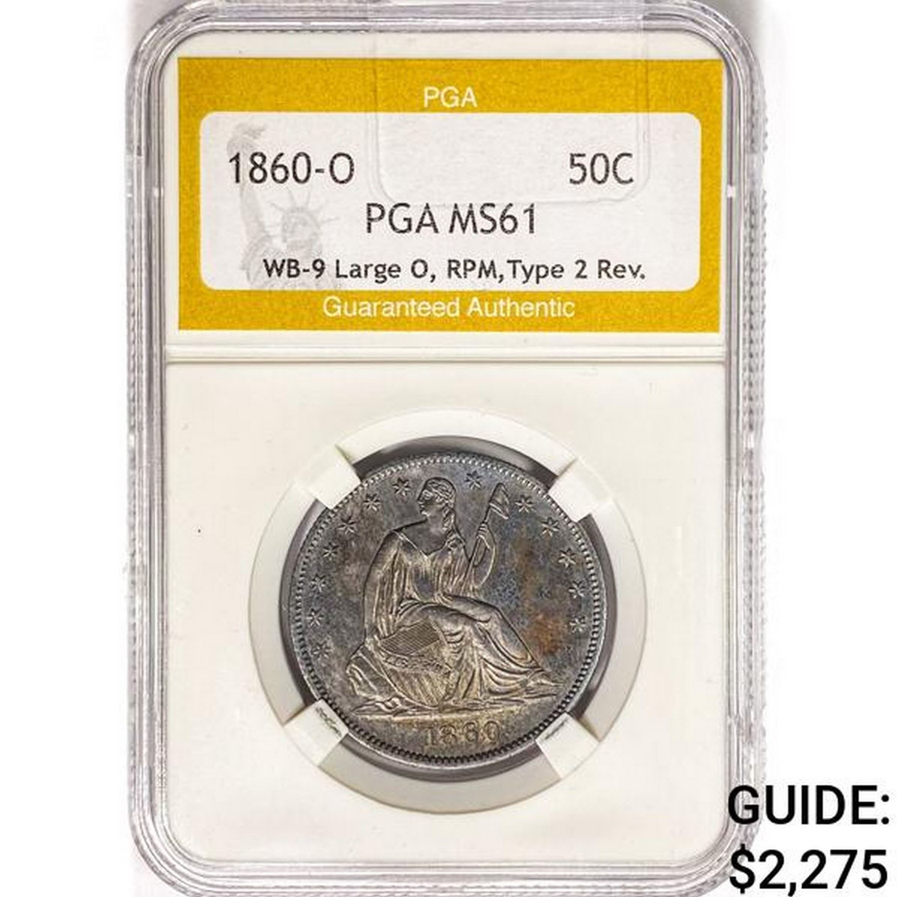 1860-O Seated Lib. 50C PGA MS61 WB-9 LG. O RPM Ty