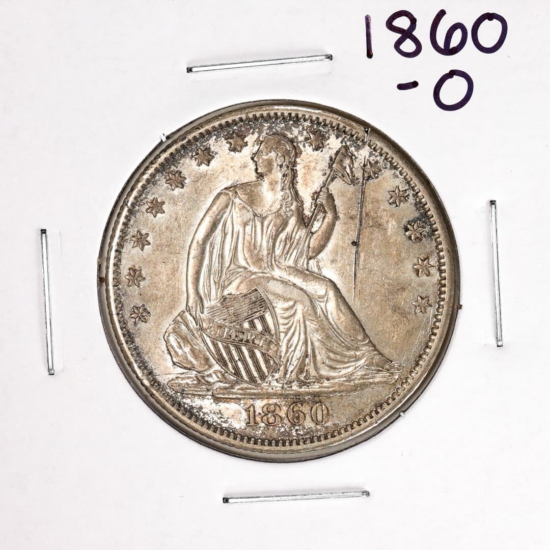One 1860-O Seated Liberty Half Dollar Coin.