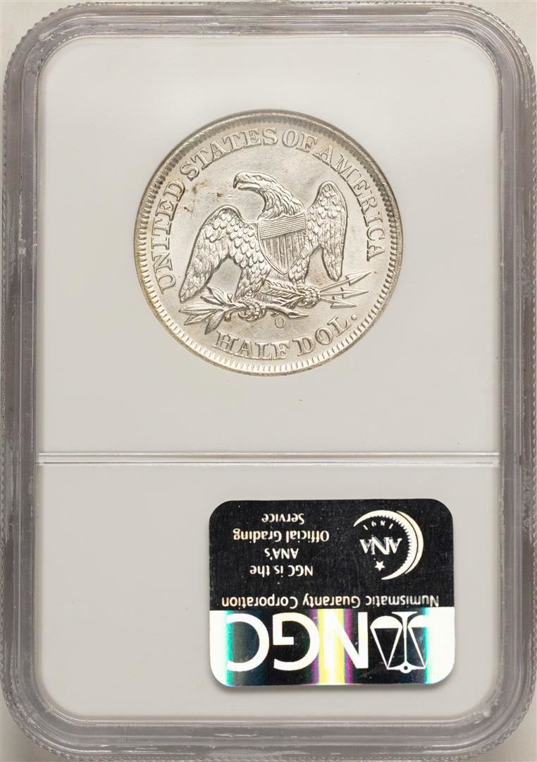 One 1860-O Shield Lines Seated Liberty Half Dollar Coin NGC Shipwreck Effect w/ Book. NGC Certified.