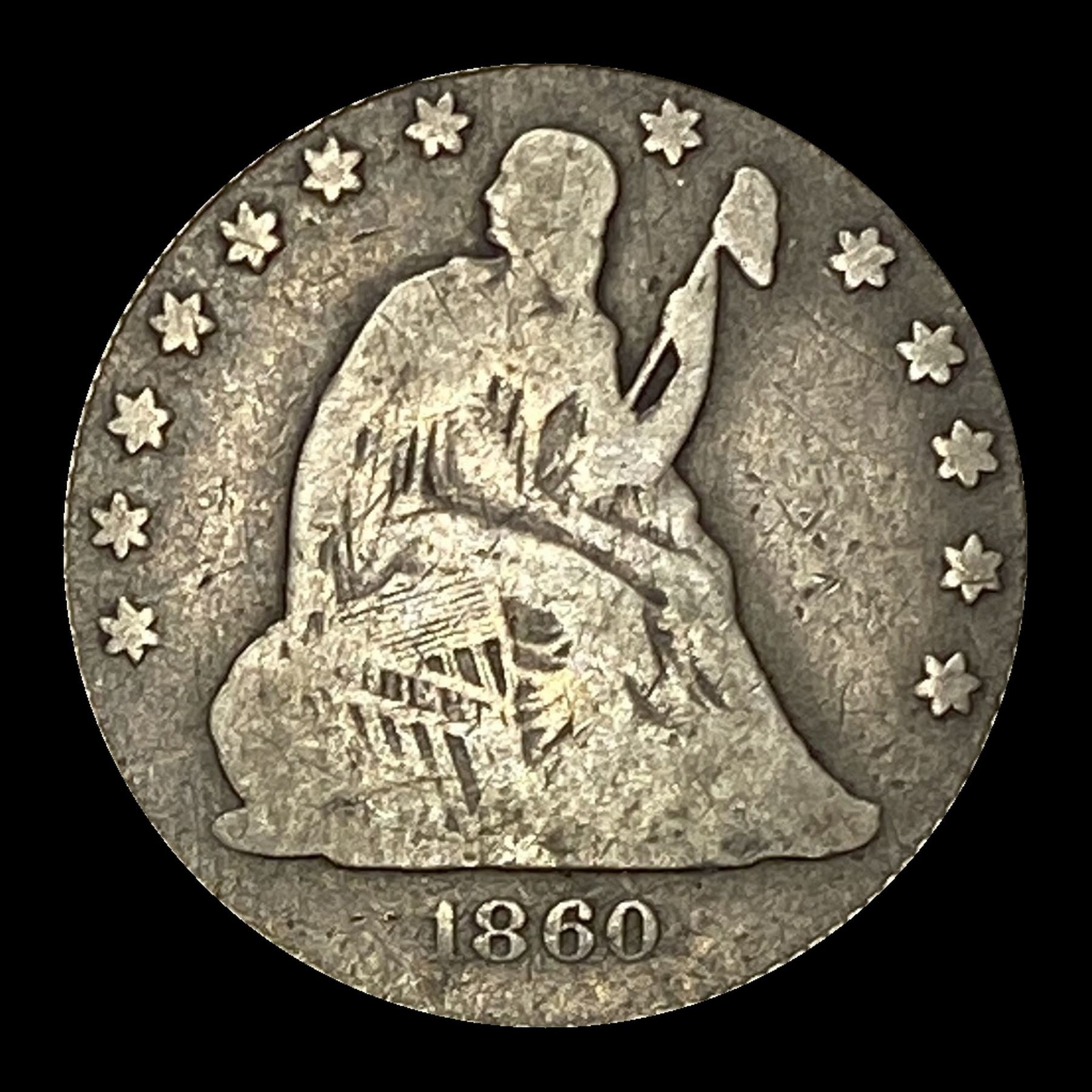1860-O Silver Seated Liberty Quarter NICELY CIRCULATED
