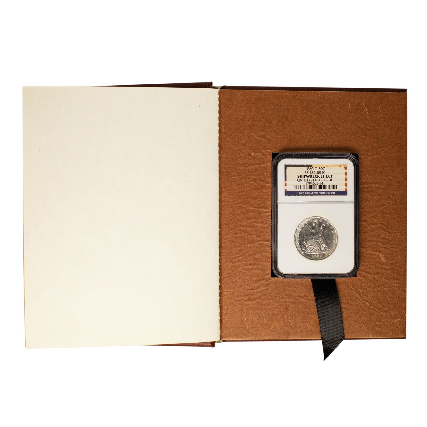 One 1860-O United States Issue Seated Liberty Half Dollar Coin NGC Shipwreck Effect w/Book.