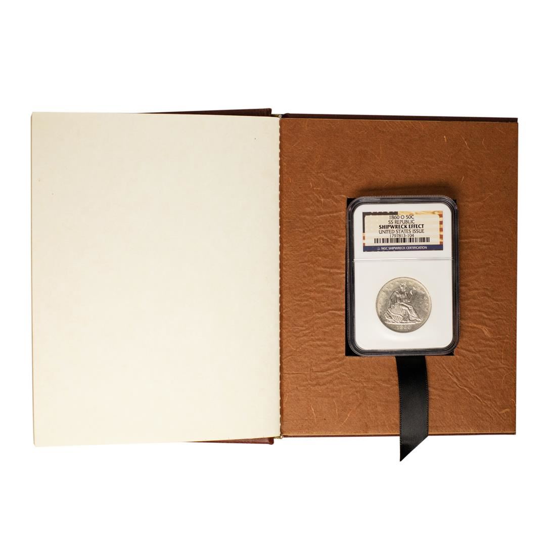 One 1860-O United States Issue Seated Liberty Half Dollar Coin NGC Shipwreck Effect w/Book. NGC Certified.