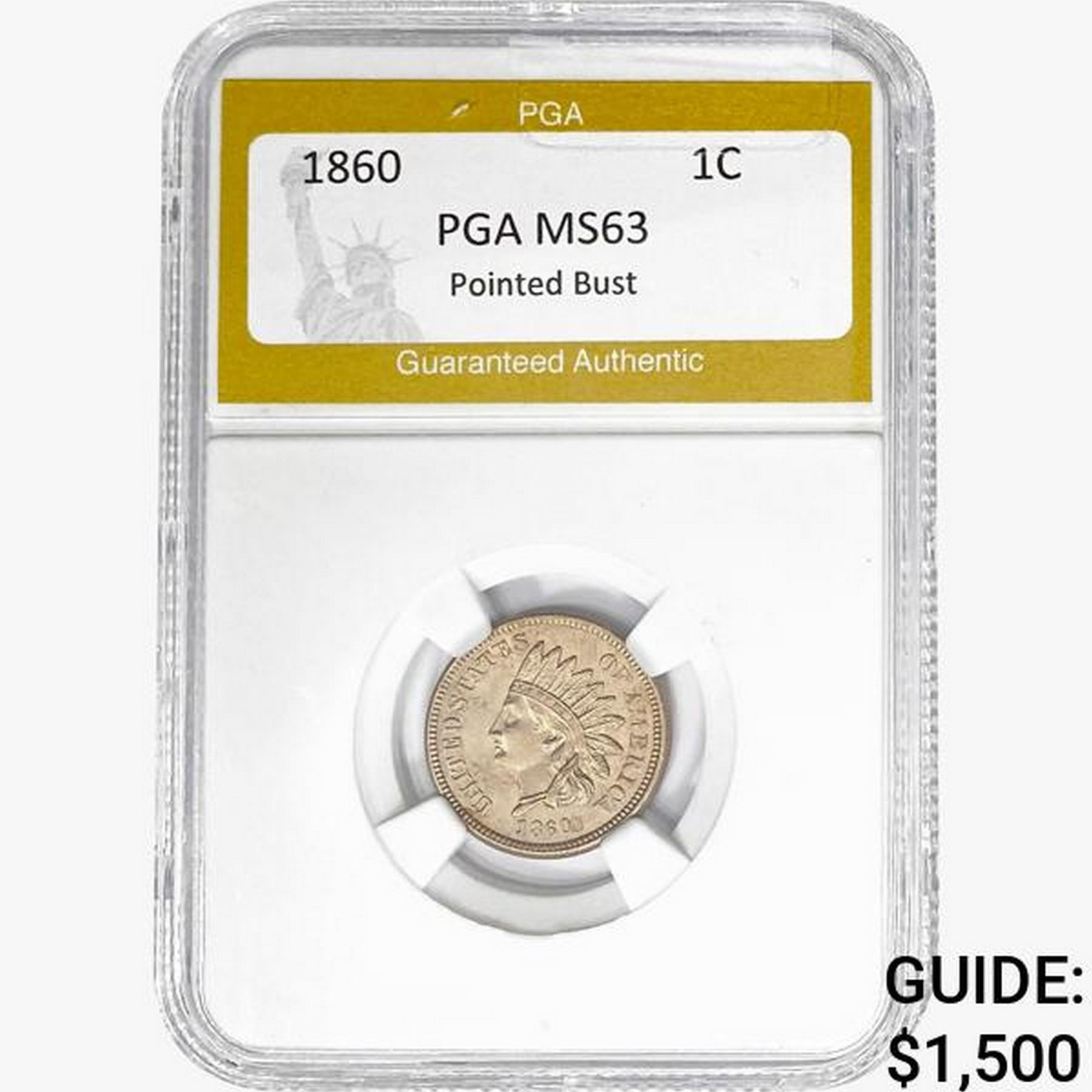 1860 POINTED BUST Indian Head Cent PGA MS63