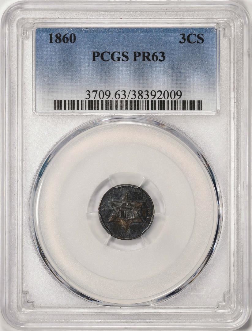 One 1860 Proof Three Cent Silver Coin PCGS PR63. PCGS Graded.