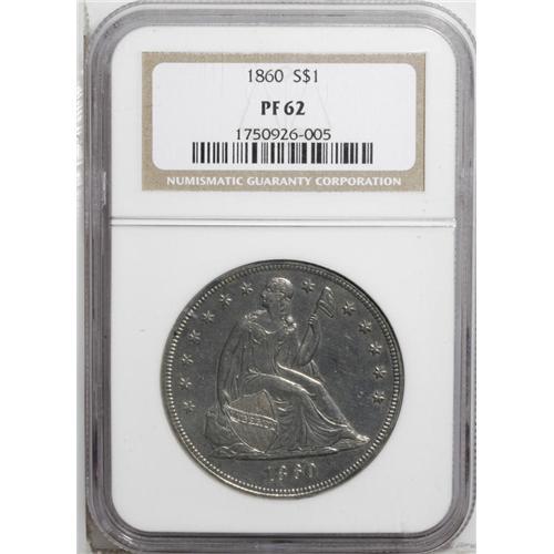 1860 S$1 PR62 NGC. Sharply struck throughout, with eve