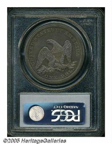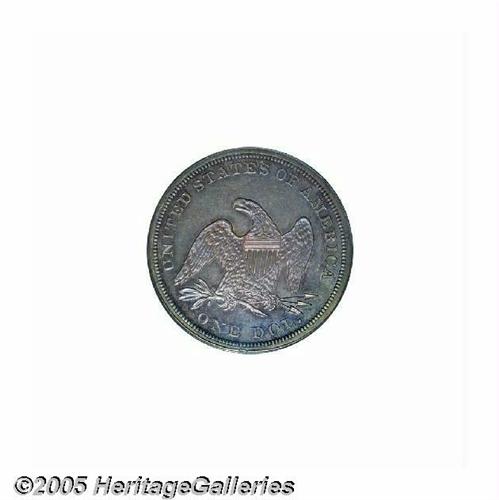 <B>1860<S$1> PR64 PCGS.</B></I> A scintillating proof, the surfaces flash intermittently beneath russet-golden toning as one rotates this coin beneath a light. Radiant blue and crimson undertones are also visible at select angles, but the powerfully struck features stand out under even the most casual glance. Carefully preserved with some claims to an even higher grade. Population: 43 in 64, 7 finer (6/05).