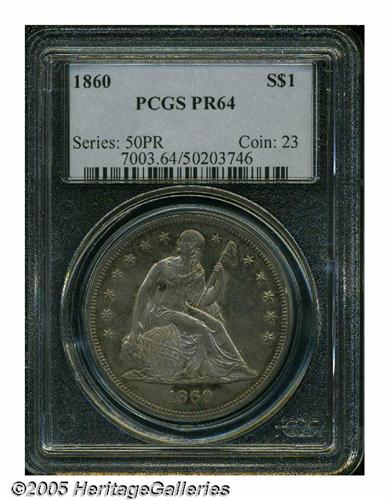 1860 S$1 PR64 PCGS. A scintillating proof, the su