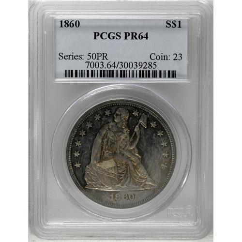 1860 S$1 PR64 PCGS. A scintillating proof, the surface 1860