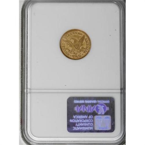<B>1860-S $2 1/2 AU55 NGC.</B></I> Unlike most other examples of this issue, the S-mint quarter eagle offered here spent only a brief time in circulation. The still-lustrous mustard-orange surfaces show only a trace of wear and few abrasions. Census: 17 in 55, 36 finer (6/07).<BR><BR><B>Coin Engraver:</B> Christian Gobrecht<BR><BR><b>Shipping:</b> Coins & Currency (<a target="_blank" href="http://www.heritageauctions.com/common/shipping.php">view shipping information</a>\)