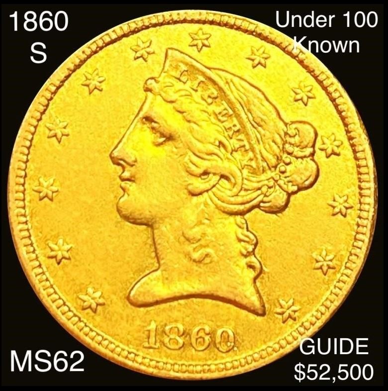 1860-S $5 Gold Half Eagle UNCIRCULATED
