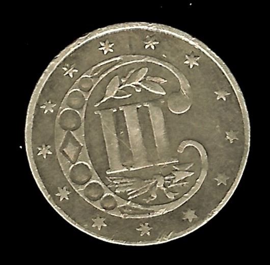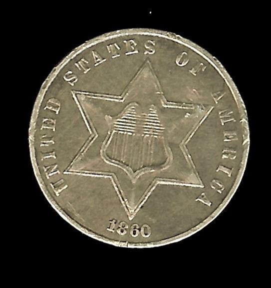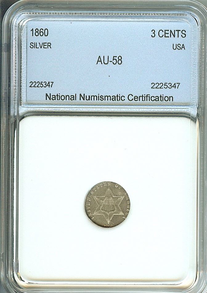 1860 SILVER 3 CENTS - TYPE 3 - NNC AU-58