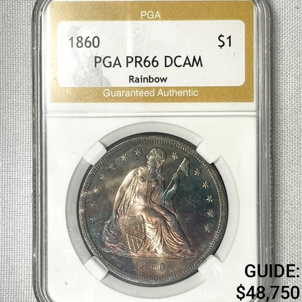 1860 Seated Liberty Dollar PGA-PR66 Rainbow