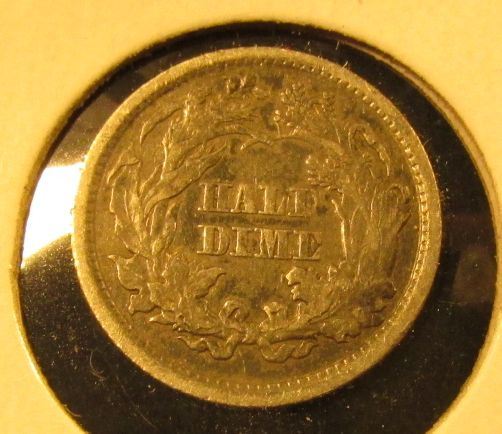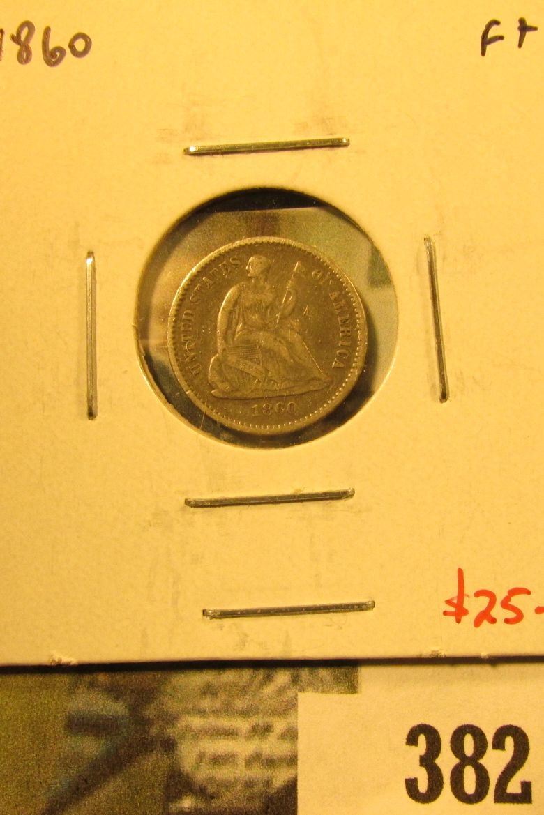 1860 Seated Liberty Half Dime, F+, value $25