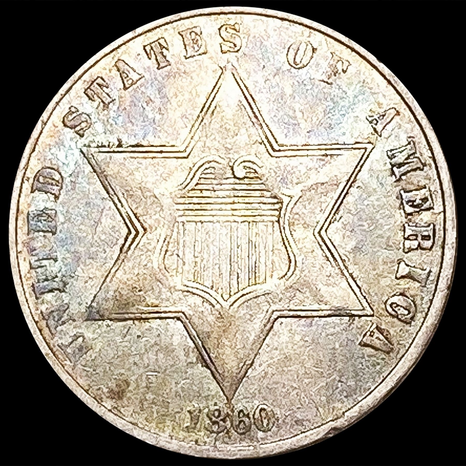 1860 Silver Three Cent CLOSELY UNCIRCULATED