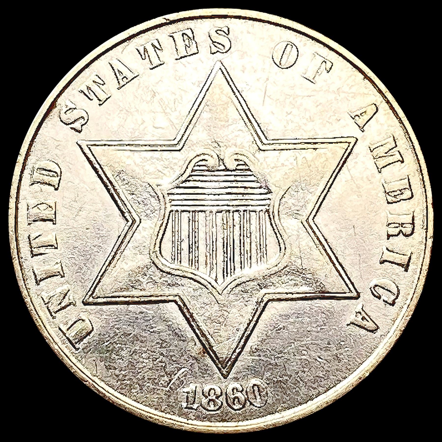 1860 Silver Three Cent CLOSELY UNCIRCULATED