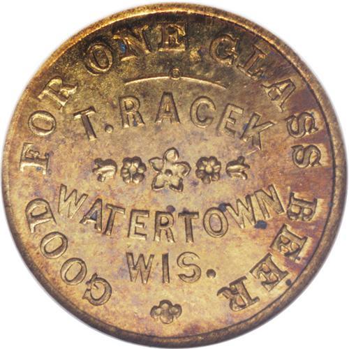 1860 T. Racek Beer Token, Watertown, WI, Fuld-WI-920M-1