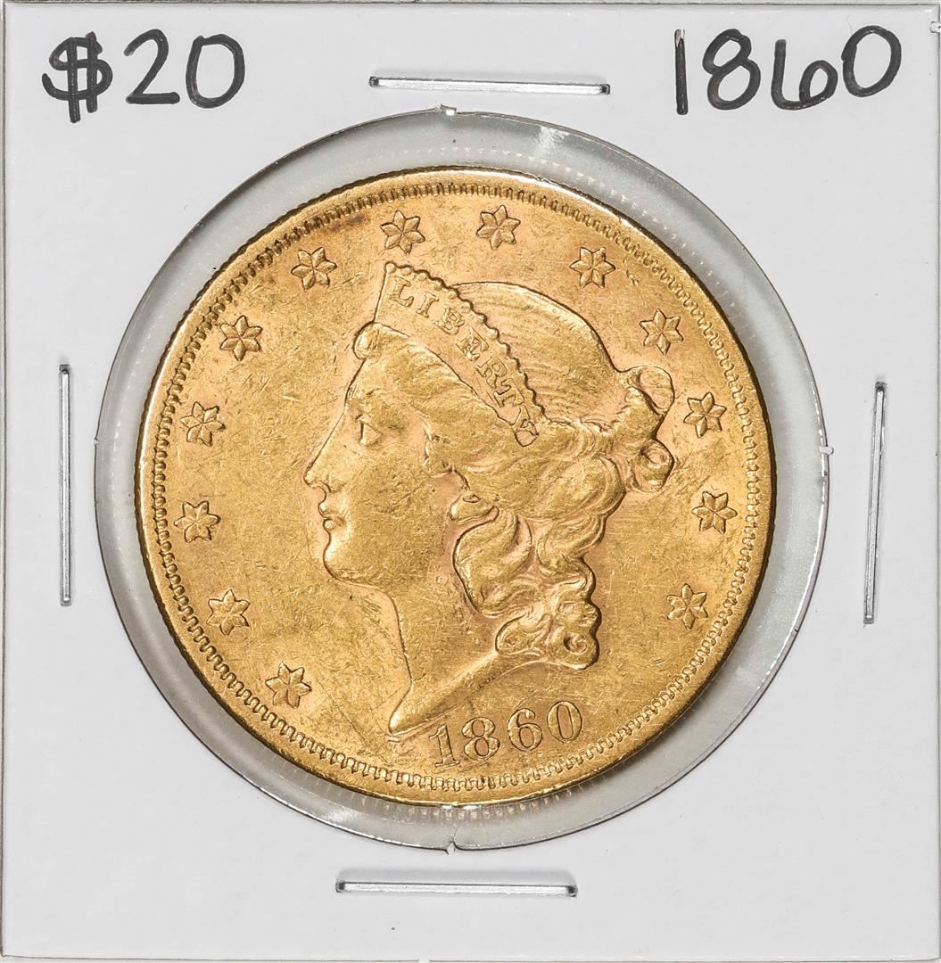 One 1860 Type 1 $20 Liberty Head Double Eagle Gold Coin.