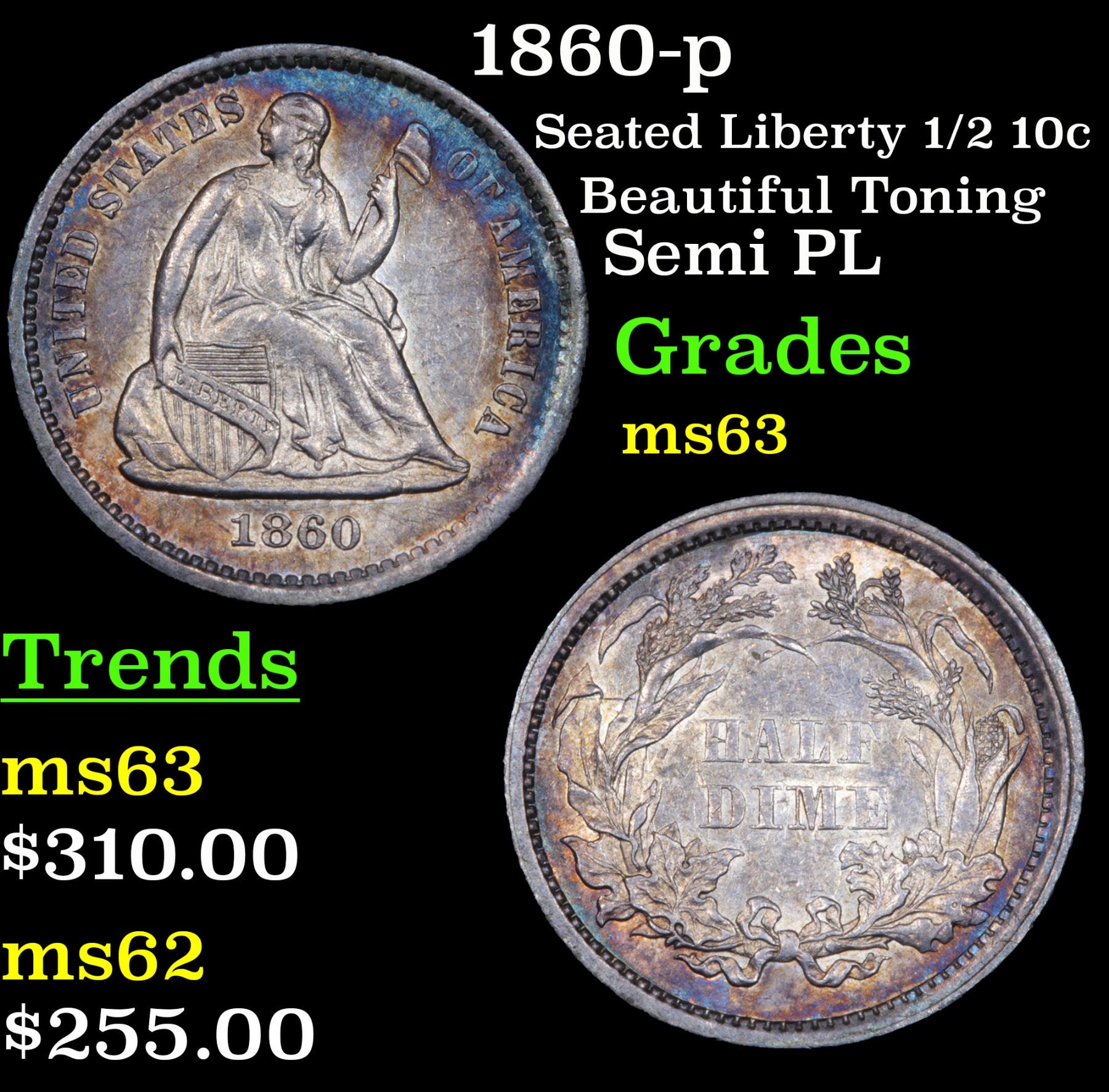 1860-p Seated Liberty Half Dime 1/2 10c Grades Select Unc.