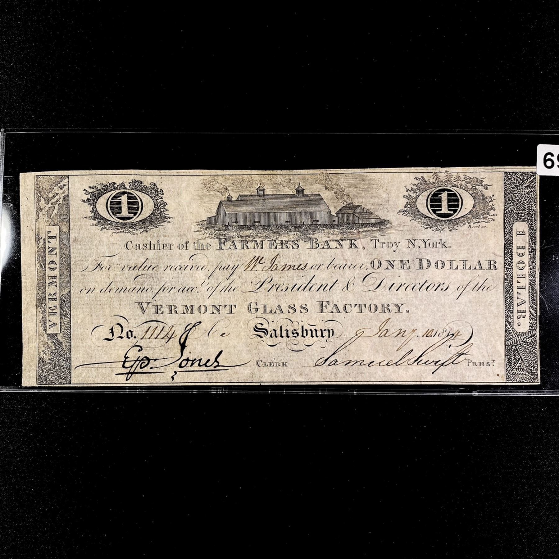1860's $1 DOLLAR, VERMONT GLASS FACTORY