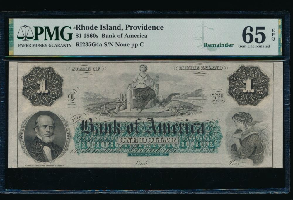 One 1860's $1 Providence RI Obsolete Note PMG 65EPQ.
