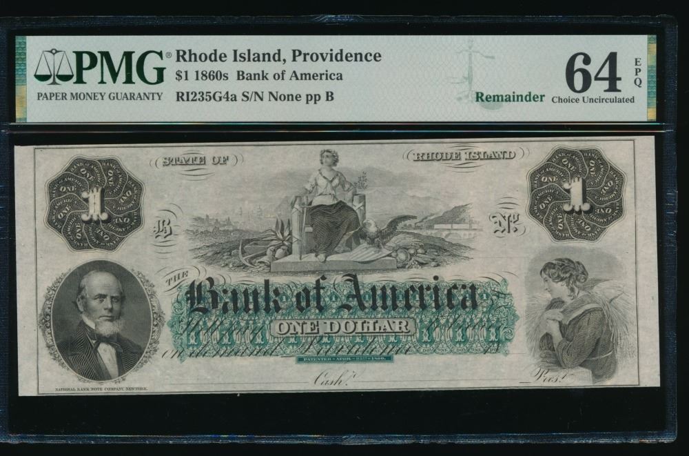 One 1860's $1 Providence RI Obsolete PMG 64EPQ.