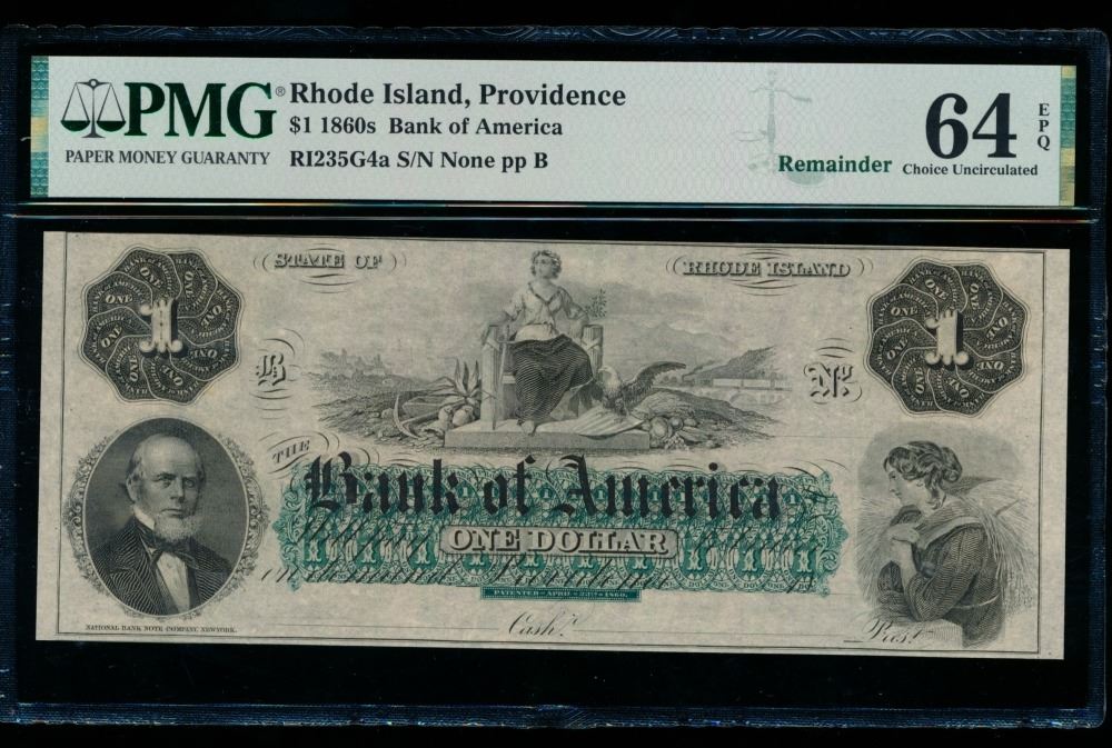 One 1860's $1 Providence RI Obsolete PMG 64EPQ.