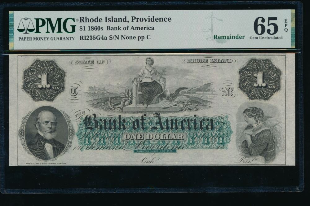 One 1860's $1 Providence RI Obsolete PMG 65EPQ.