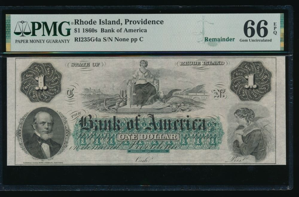 One 1860's $1 Providence RI Obsolete PMG 66EPQ.