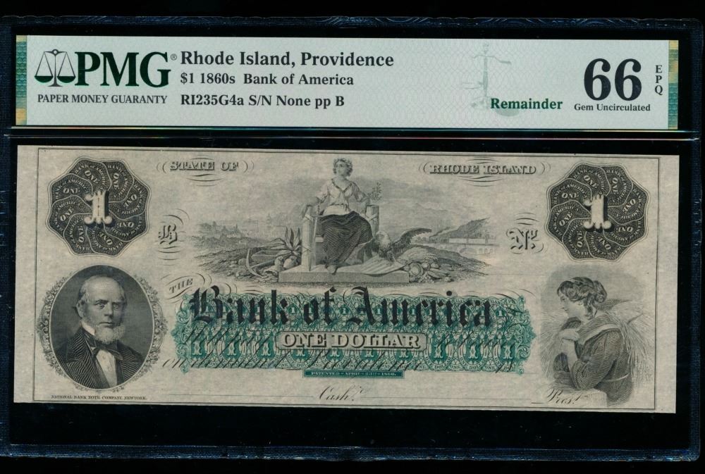 One 1860's $1 Providence RI Obsolete PMG 66EPQ.
