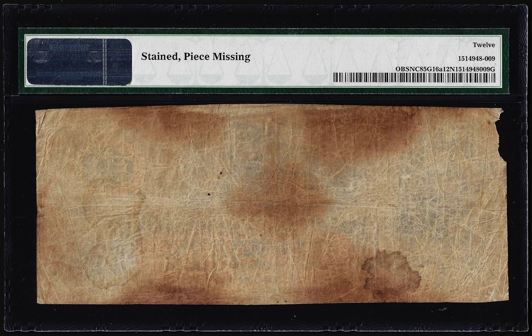One 1860's $10 Bank of Washington North Carolina Obsolete Note PMG Fine 12 Net. PMG Certified.